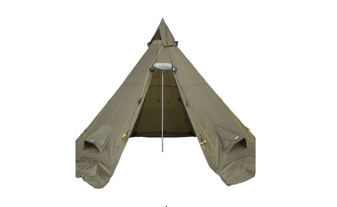 Liten lavvo, med plass til overnatting for 4 - 6 personer. Lavvoen har ikke gulv.