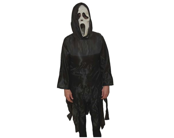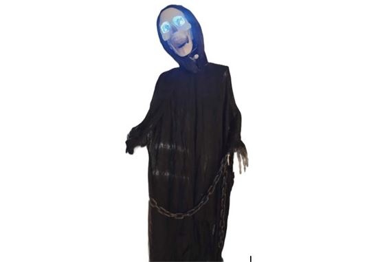 Spøkelset er drapert i svart kappe og kjettinger. Øynene blinker, og hodet vaier frem og tilbake, mens det brøler. Ca. 170 cm. Står på stativ.
