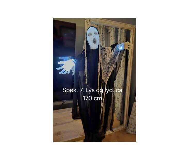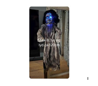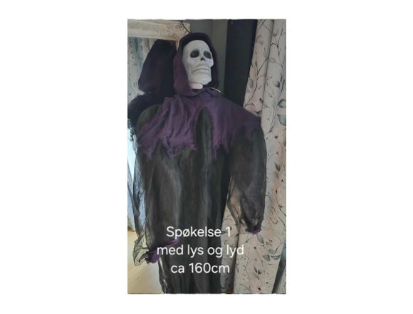 Spøkelse med lyd og lys. Ca. 160 cm. Henges opp med snor.