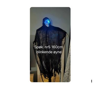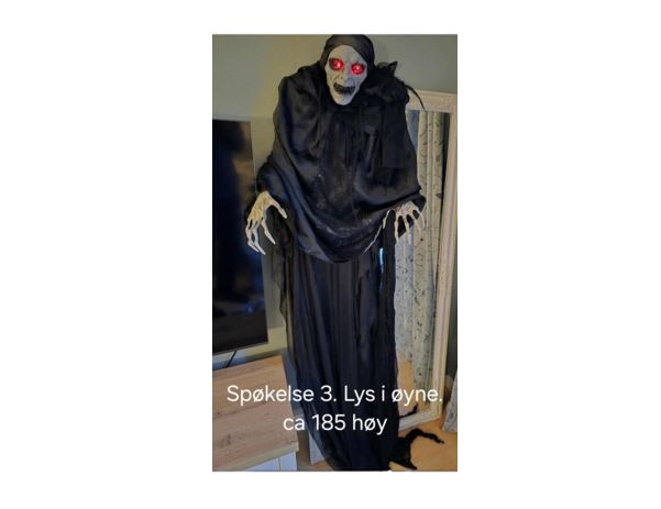Dette spøkelset lyser og blinker øyne og hender. Ca. 160 cm og henges opp med snor.