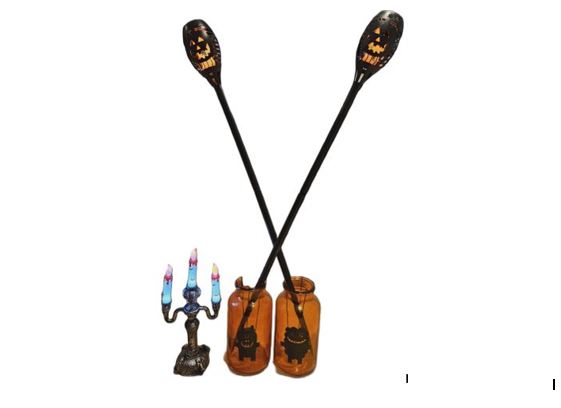 To elektriske fakler med halloweenmotiv. Høyde: 53 cm.