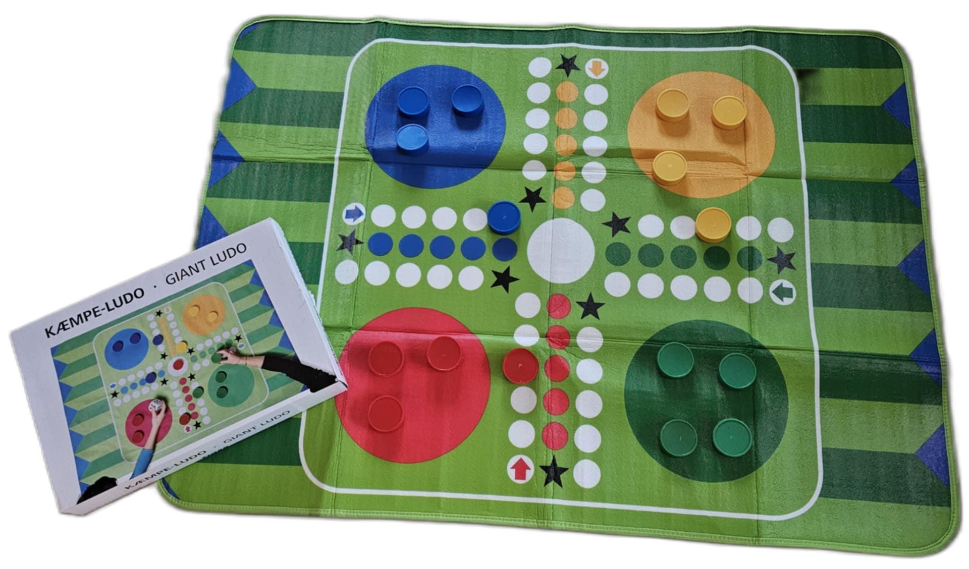I kjempeludo er spillebrettet et teppe på 90 x 130 cm, som gjør det ekstra gøy for barna.